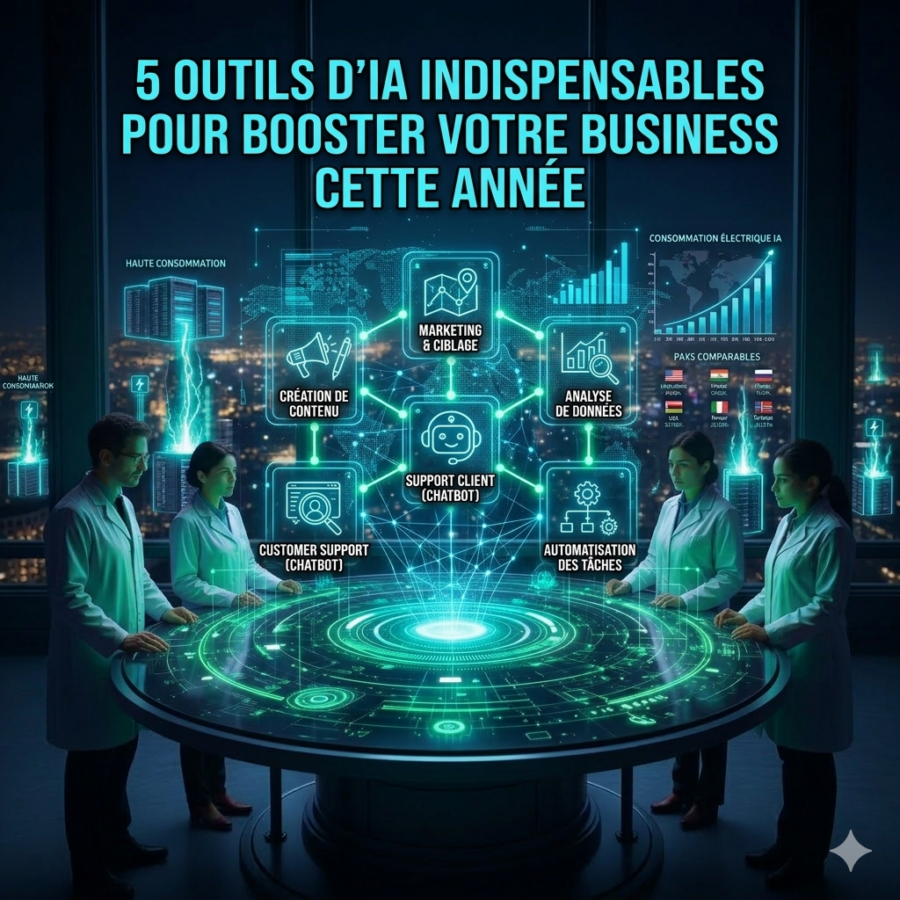 Découvrez 5 outils d’IA indispensables pour booster votre business cette année. De la création de contenu à l’automatisation, ces solutions aident à gagner du temps et accélérer la croissance.