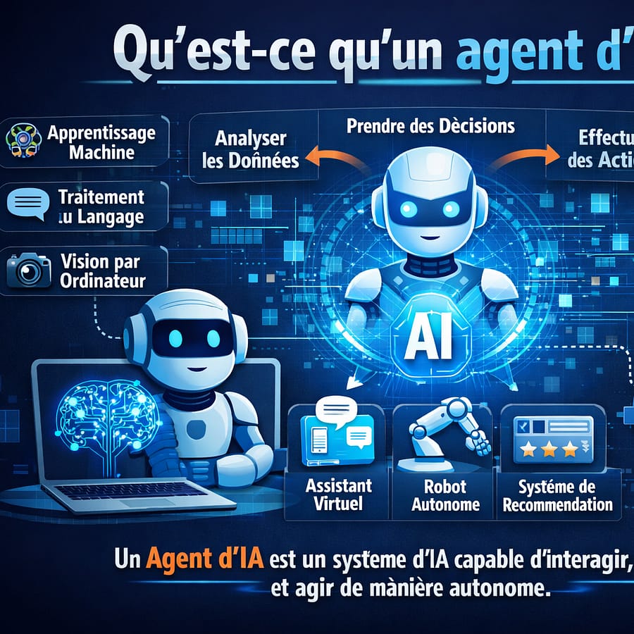 Un agent d’ia ne fait pas que répondre : il perçoit une situation, planifie et agit via des outils pour accomplir une tâche, avec des garde-fous selon les risques.